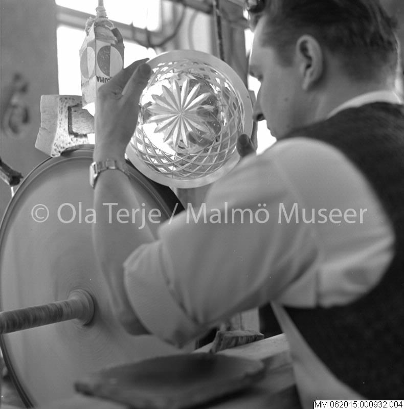 Slipning av glas, Åfors glasbruk, april 1969.