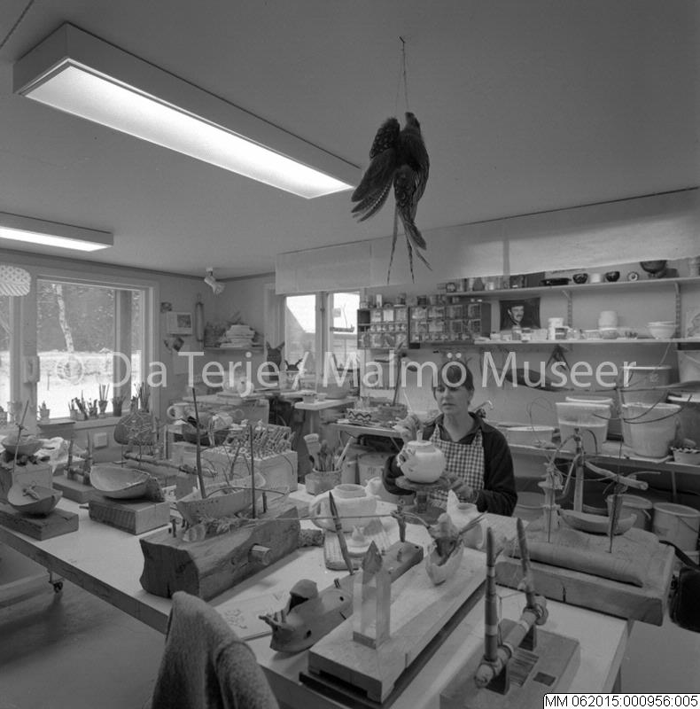 Konstnären Ulrika Hydman Vallien i ateljén, 800115.