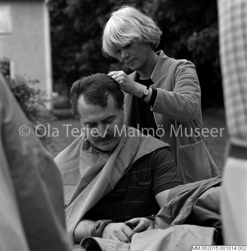 Från inspelningen av filmen "Mitt liv som hund" vid Åfors glasbruk, 850612.
