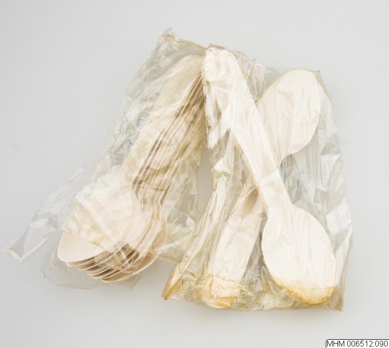 Två paket med plastskedar, en öppnad, en oöppnad.