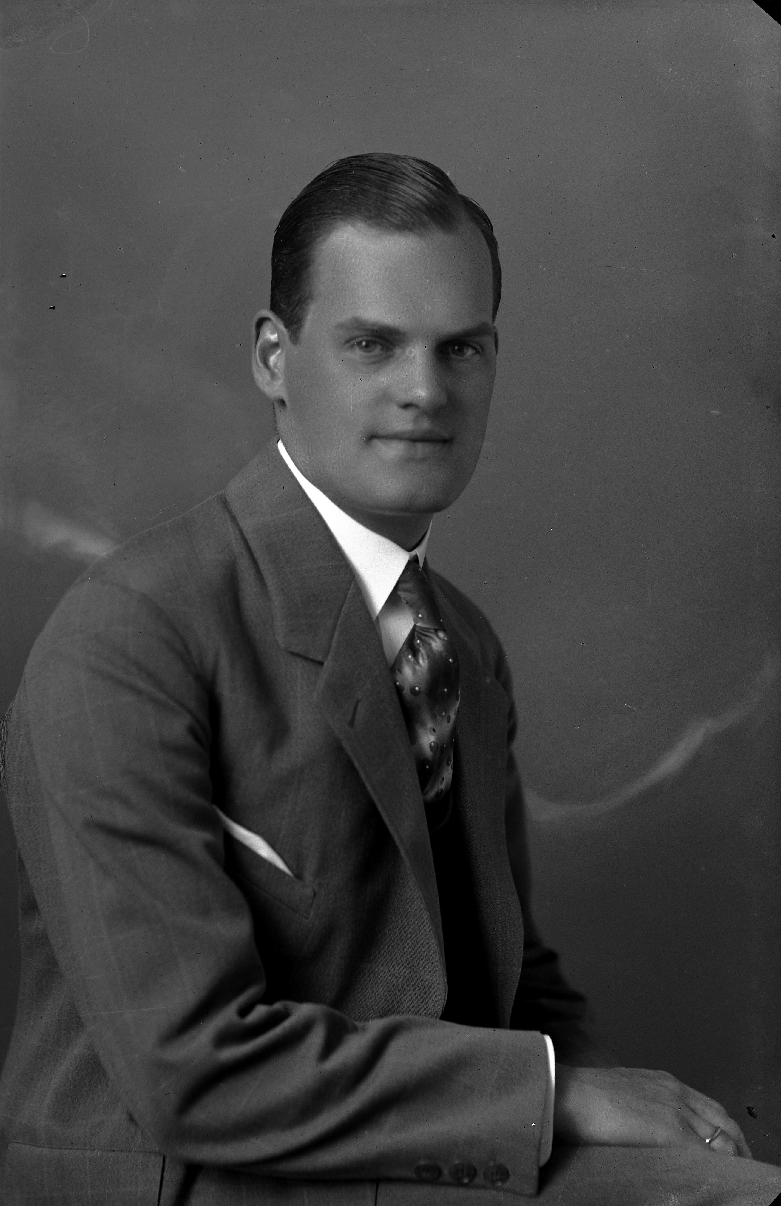 Porträtt i halvfigur av textilfabrikör Oskar Stomberg i Borås.