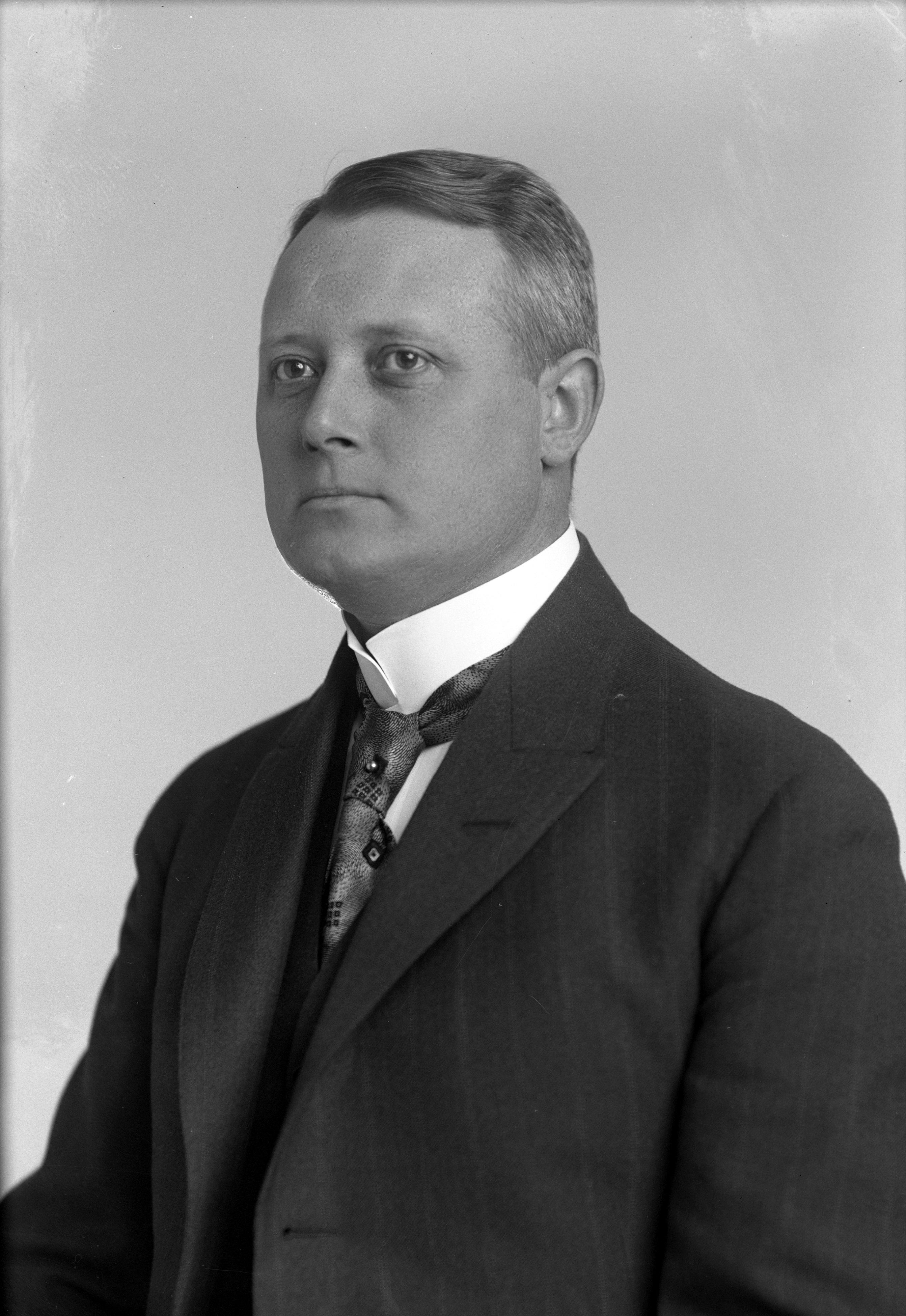 Porträtt i halvfigur av direktör Olsberg vid Malmö Slakthus.