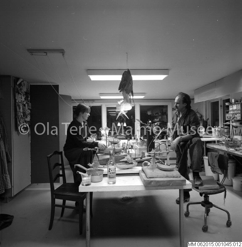 Konstnärsparet Bertil Vallien och Ulrica Hydman Vallien i ateljén i Åfors, 800115.
