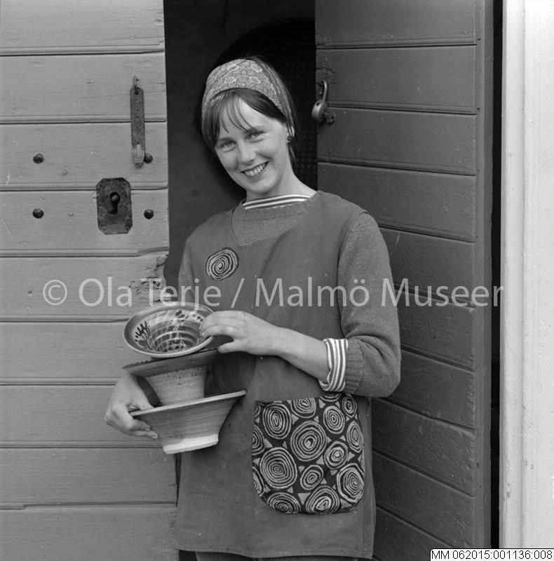 Konstnären Ulrika Hydman Vallien med sin keramik, Åfors, 1964.