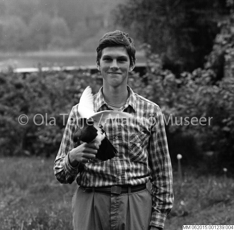 Markus Vallien (son till Bertil Vallien och Ulrika Hydman Vallien), med duva, Åfors, 850612.