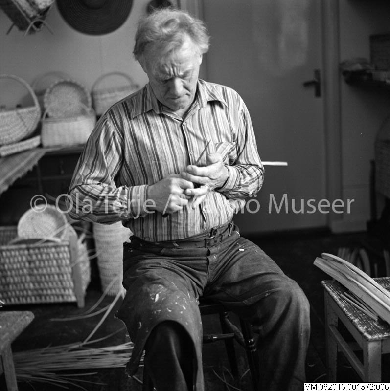 MM 062015:001372:006 :: man, träslöjd, träslöjdare, granrotsslöjd, porträtt