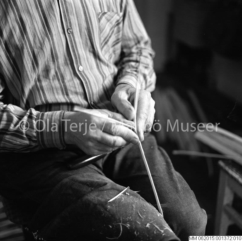 MM 062015:001372:010 :: man, träslöjd, träslöjdare, granrotsslöjd, porträtt