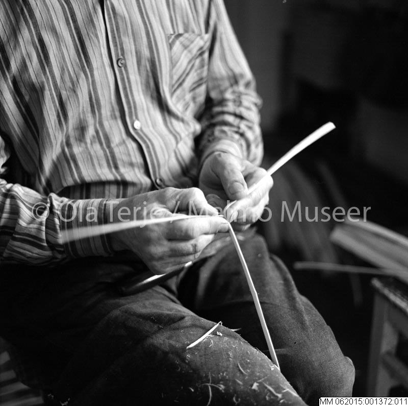 MM 062015:001372:011 :: man, träslöjd, träslöjdare, granrotsslöjd, porträtt