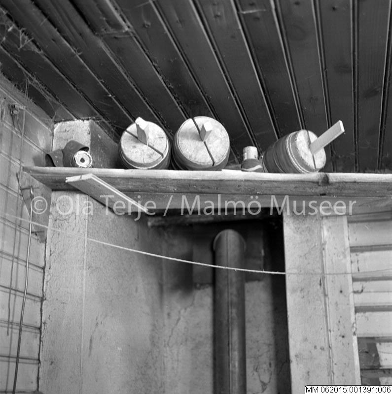 Näverburkar på tork i verkstaden hos träslöjdaren Carl Gustavsson i Trekanten 13/4 1970.