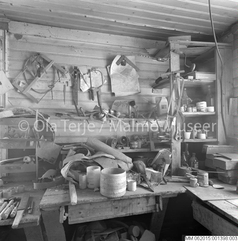I verkstaden hos näverslöjdaren Carl Gustavsson i Trekanten, 13/4 1970.