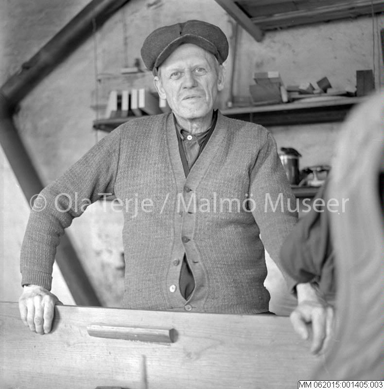 Besökare i verkstaden hos möbelsnickare Gustaf Wallin på Ängö, Kalmar 14/4 1970.