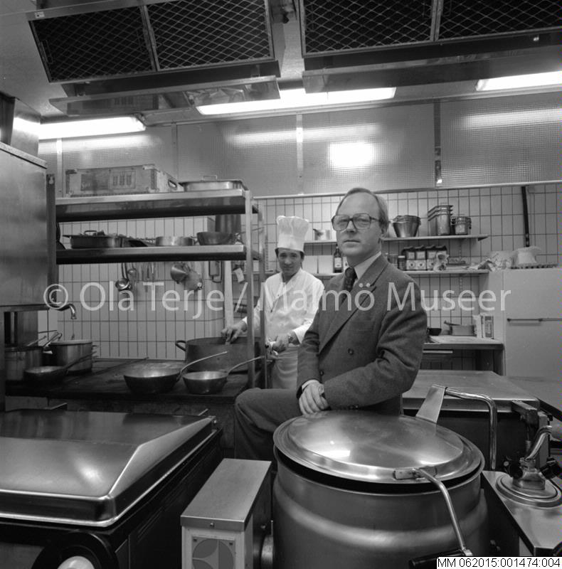 Krögare och kock i köket på restaurang Carolus i Malmö, 830608.