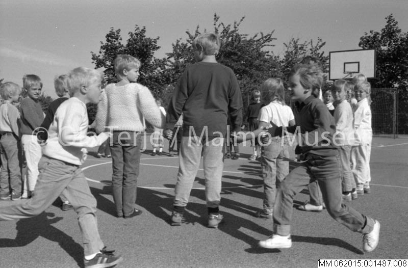 Från en skola i Kivik, reportage för Lärartidningen. 4:orna var faddrar åt 1:orna. 850913.