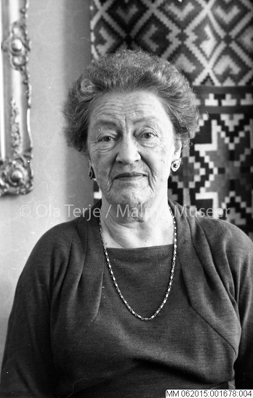 Porträtt av Thora Kulle, konstväverska som även drev vävskola, Lund 1959.
