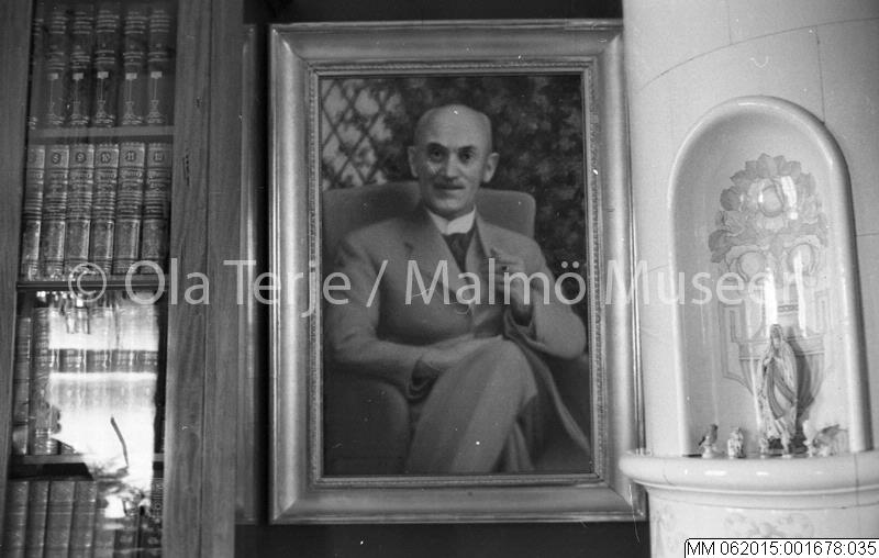 Interiör från Dr Nils Brinkes (död 1958) patriciervåning på Sandgatan 6 i Lund, tavla föreställande Dr Nils Brinke, 1959.