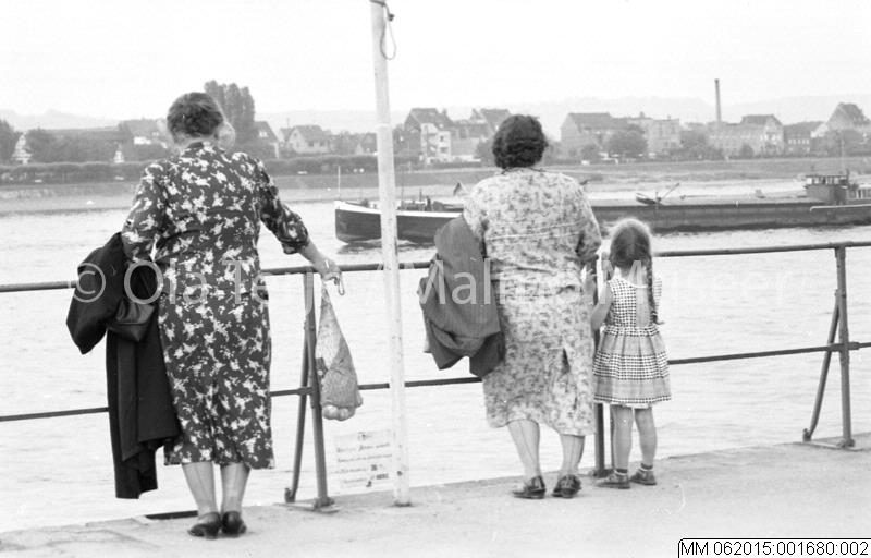 Gatubilder från München, kvinnor med barn i hamnen, 1957.