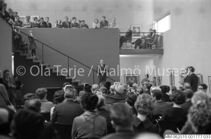 Vernissage på Lunds Konsthall med konstnären Max Walter Svanberg, okänd talare, Lund 1962.