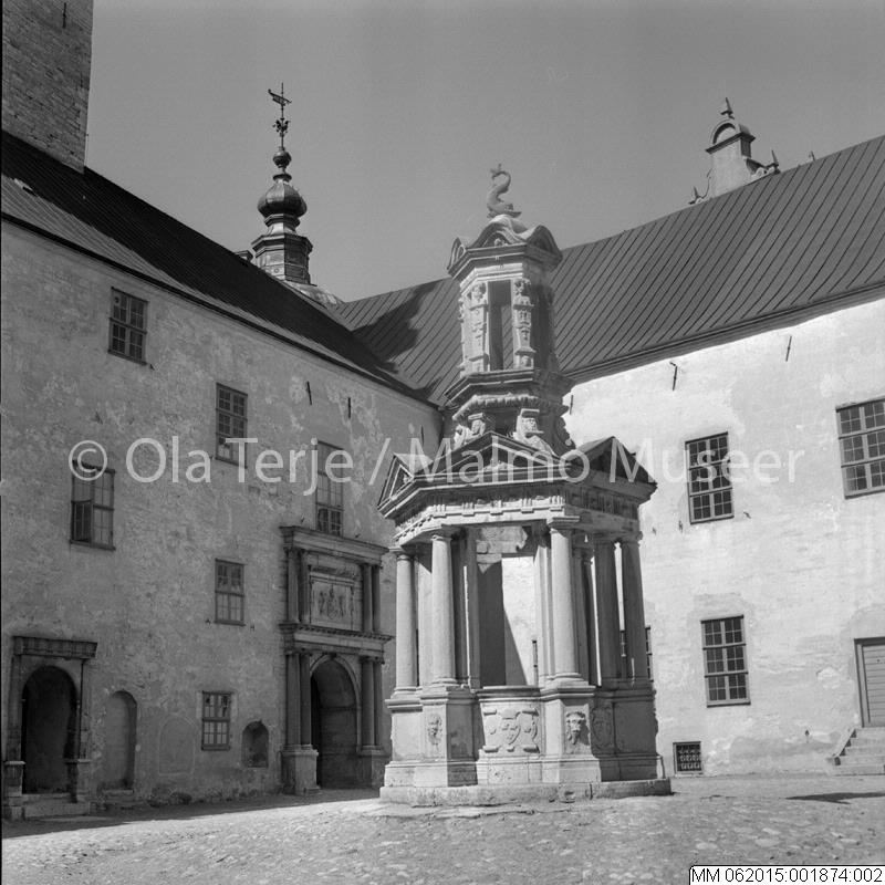 Exteriör från Kalmar slott, brunnen på borggården, 1966.