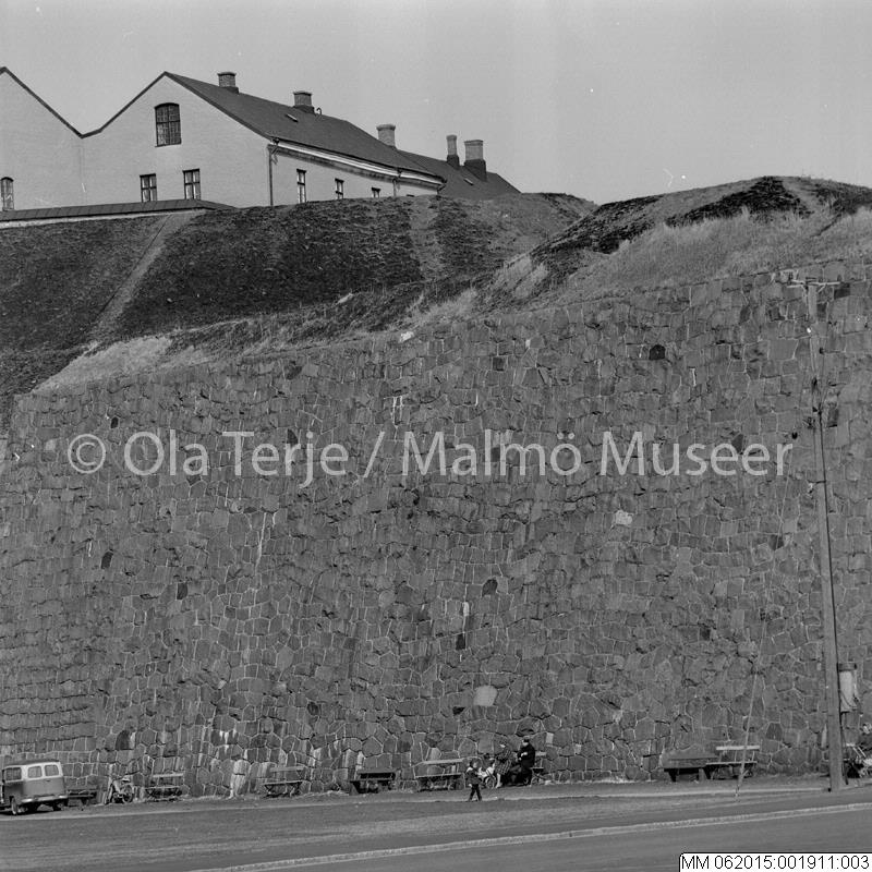 Exteriör från Varbergs slott, muren, 1966.