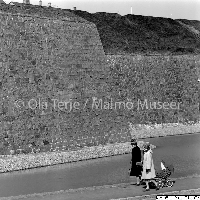 Exteriör från Varbergs slott, muren, 1966.