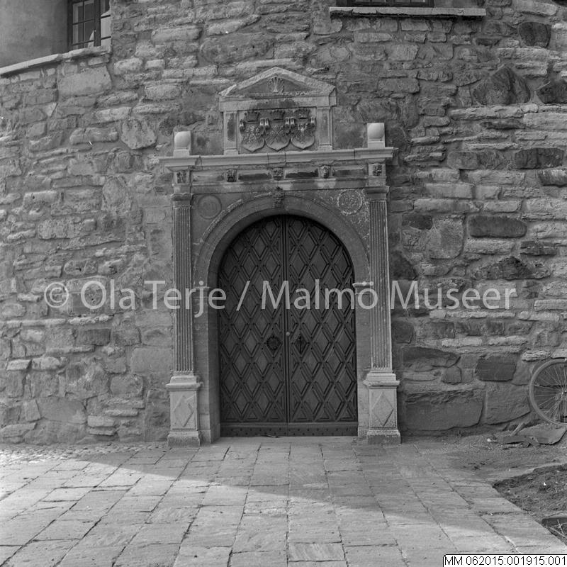 Exteriör från Örebro slott, port med vapen och inskriptionen AD 1897, 1966.