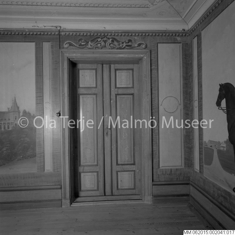Interiör från gård i Lilla Isie, dörrvalv med spegeldörrar och snidade karmar. Troligen beställt av Sten-Åke "Stånke" Nilsson, professor i konstvetenskap, 911122.