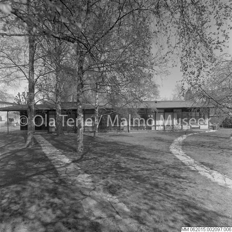 Exteriör från möbelformgivaren Bruno Mathssons glashus i Värnamo, maj 1974.
