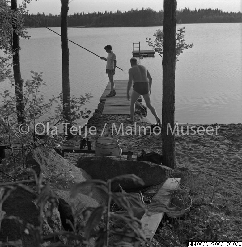 Fiske och bad vid bryggan vid Kässjö, juni 1969.
