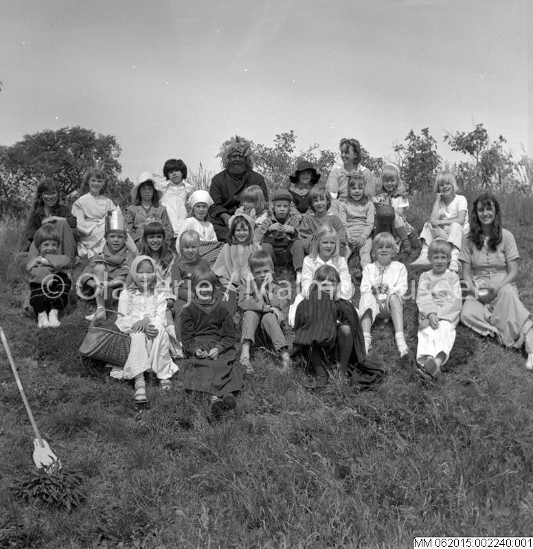 Elever och lärare på Rudolf Steinerskolan i Hardeberga, på utflykt, 1980-tal.