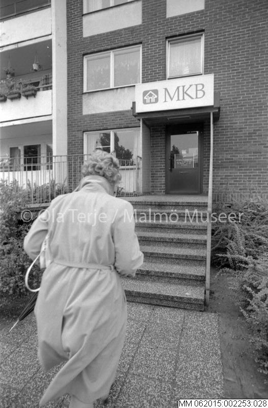 På väg in till lokalkontoret. Uppdrag för MKB Fastighets AB, Malmö 800820.