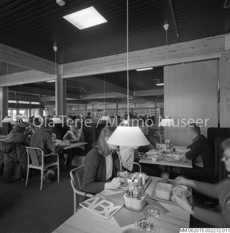 Interiör, restaurang med lunchgäster. Uppdrag för MKB Fastighets AB, Malmö 810330.