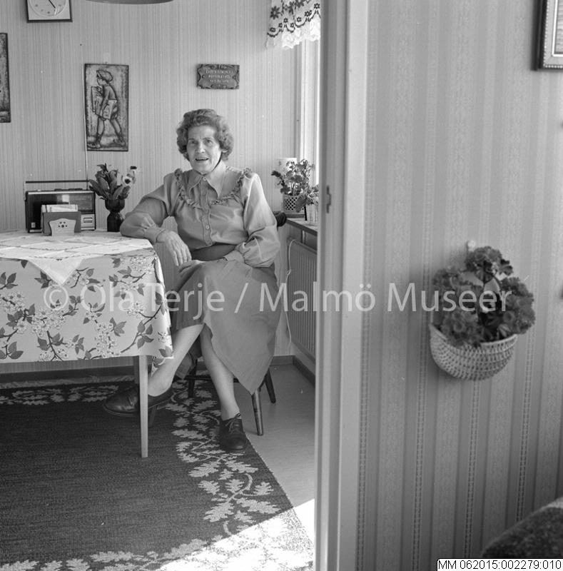 Interiör, hyresgäst i köket. Uppdrag för MKB Fastighets AB, Malmö 810405.