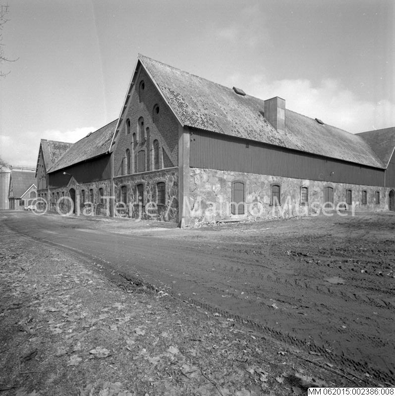 - Exteriör av ekonomibyggnad tillhörande Hyby slott. Bilderna beställda av professor Sten-Åke "Stånke" Nilsson, konstvetenskapliga institutionen i Lund, för ett bokprojekt om 1800-talets ombyggnader och renoveringar. Hyby, 860403.