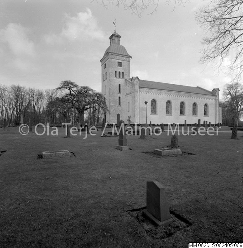 - Exteriör från Trollenäs kyrka. Bilderna beställda av professor Sten-Åke "Stånke" Nilsson, konstvetenskapliga institutionen i Lund, för ett bokprojekt om 1800-talets ombyggnader och renoveringar. 860423.