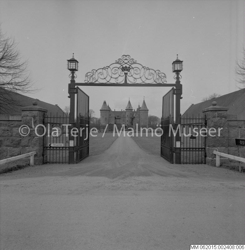 - Exteriör från Trolleholms slott, entrén. Bilderna beställda av professor Sten-Åke "Stånke" Nilsson, konstvetenskapliga institutionen i Lund, för ett bokprojekt om 1800-talets ombyggnader och renoveringar. 860423.