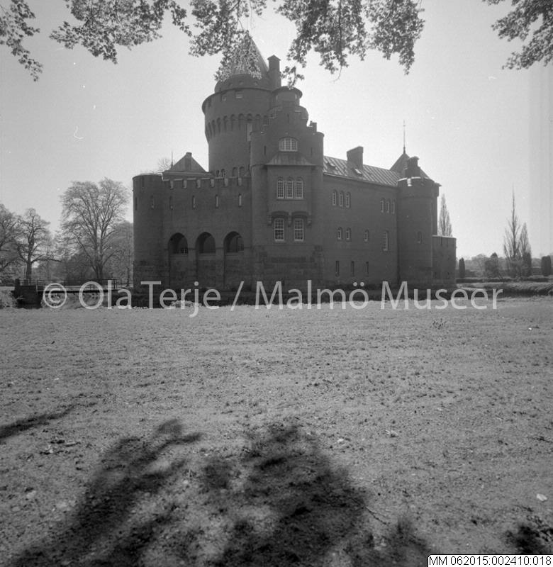 - Exteriör från Hjularöds slott med vallgraven. Bilderna beställda av professor Sten-Åke "Stånke" Nilsson, konstvetenskapliga institutionen i Lund, för ett bokprojekt om 1800-talets ombyggnader och renoveringar. 860520.