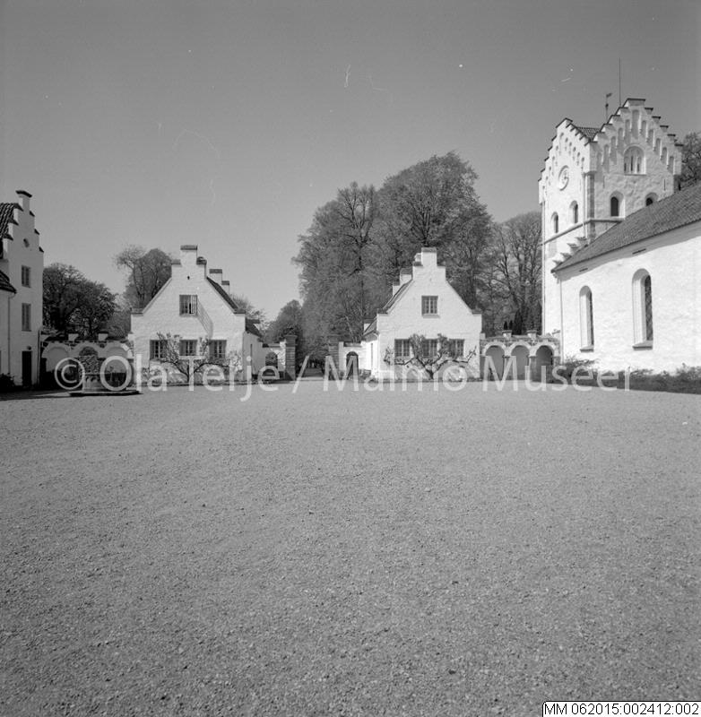 - Exteriör från Bosjökloster, med kyrkan till höger. Bilderna beställda av professor Sten-Åke "Stånke" Nilsson, konstvetenskapliga institutionen i Lund, för ett bokprojekt om 1800-talets ombyggnader och renoveringar. 860520.