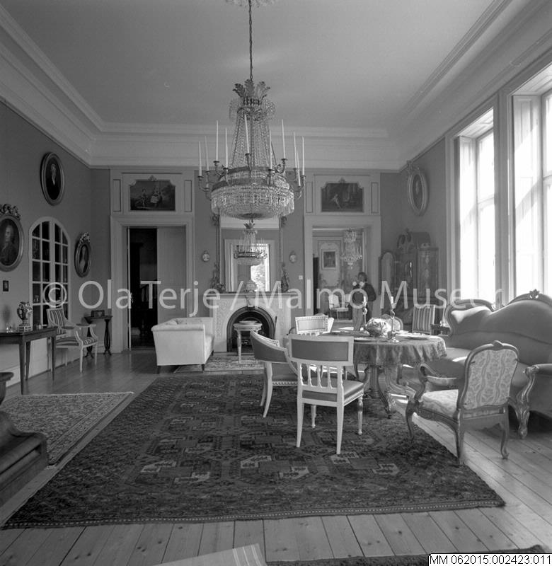 - Interiör från Bellinga slott vid Ystad. Bilderna beställda av professor Sten-Åke "Stånke" Nilsson, konstvetenskapliga institutionen i Lund, för ett bokprojekt om 1800-talets ombyggnader och renoveringar. 860530.