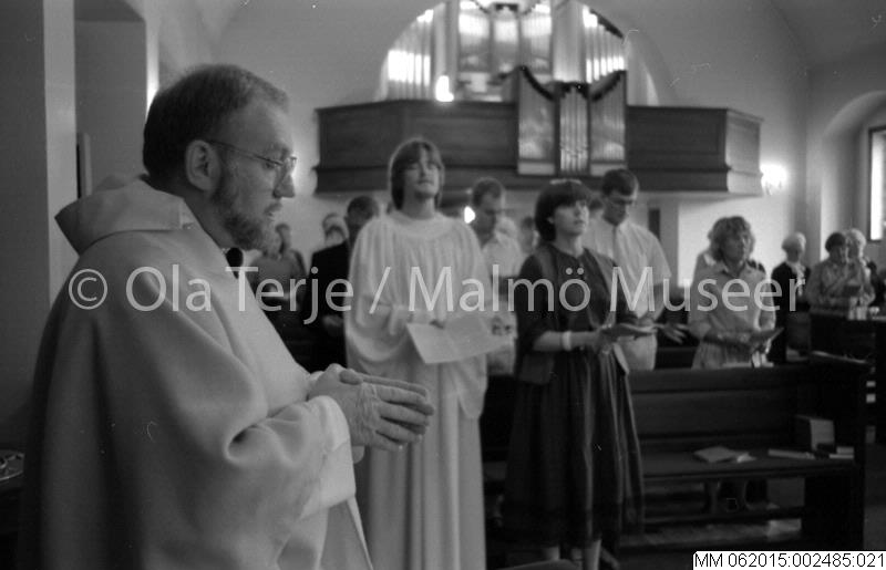 Mässa i Kirsebergs kyrka, prästen Ingemar Thorin med flera. Malmö 840603.