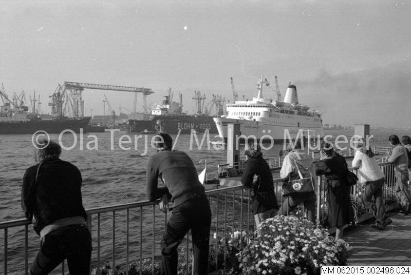 Människor i hamnen, Hamburg 790924. Uppdrag för bokförlaget Corona i Malmö, för en lärobok i tyska.