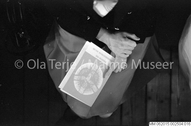 MM 062015:002504:016 :: kvinna, program, pingstfirande, interiör, häfte