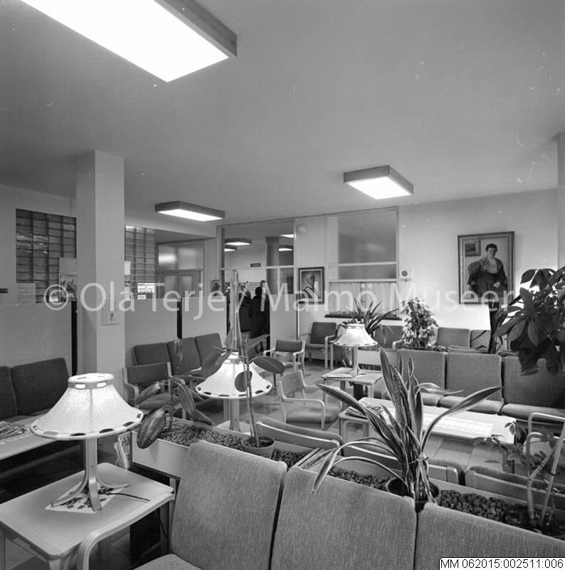 Onkologiska kliniken vid Lunds Lasarett, väntrum med garderoben i bakgrunden. 880209.