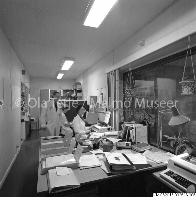 Onkologiska kliniken vid Lunds Lasarett, sekreterarrum. 880209.