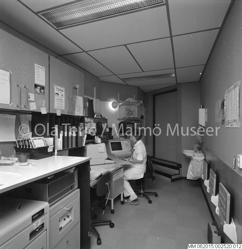 - Onkologiska kliniken vid Lunds Lasarett, tekniker i manöverrum, strålningsavdelningen ESA. 880209.