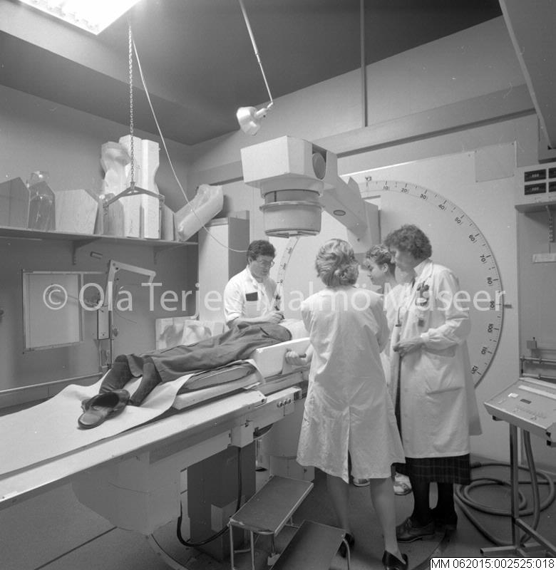 - Onkologiska kliniken vid Lunds Lasarett, patient får behandling med simulator på strålningsavdelningen ESA. 880215.