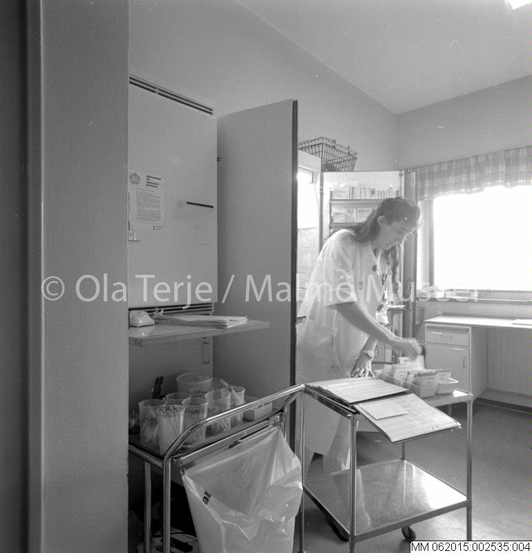 avdelning; interiör; klinik; kvinna; lasarett; läkemedelsförråd; onkologiska kliniken