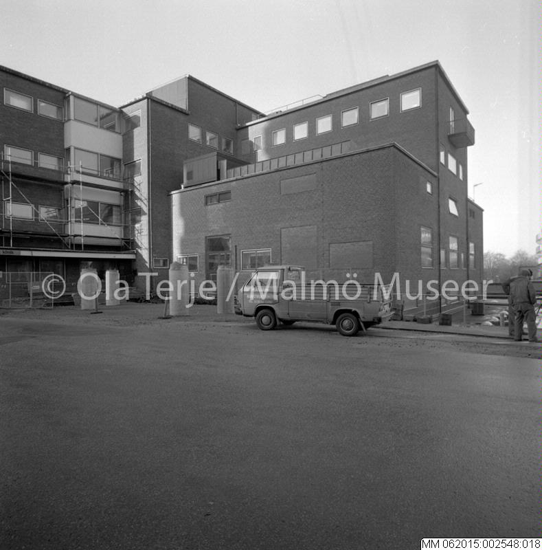 Exteriör från Onkologiska kliniken vid Lunds Lasarett. 880222.