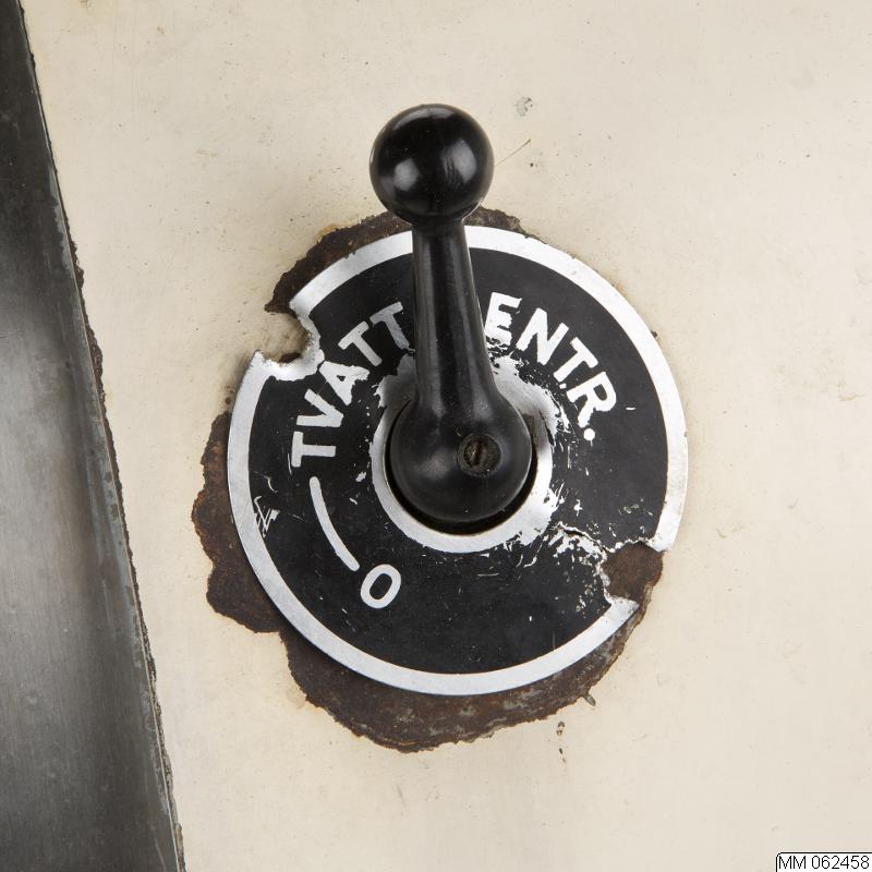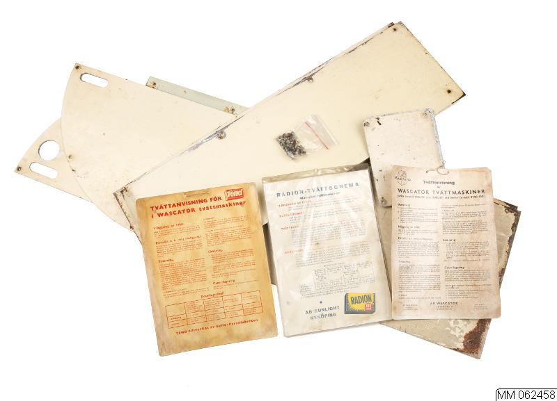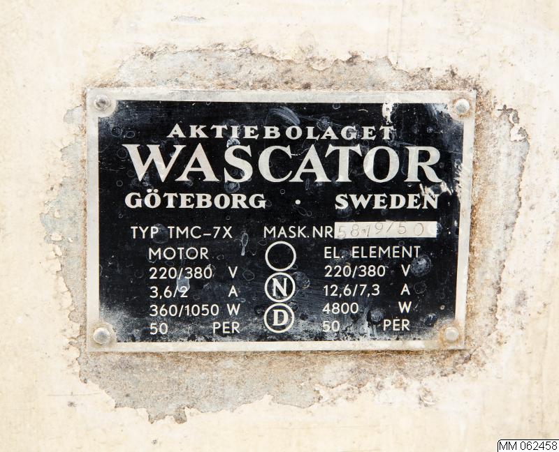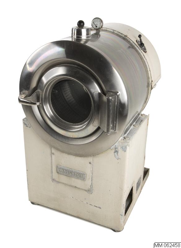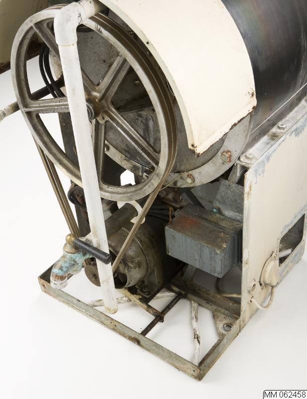 - Hemtvättmaskin med horisontell trumma. Upptill en termometer av märket NAF graderad 0-100 C. Elmotor baktill på maskinen märkt EMFA typ SE 93. Tvättanvisningar finns. Maskinen installerades som ny i ett radhus på Vanåsgatan 123 i Malmö. Den användes där ända fram tills det att huset bytte ägare.