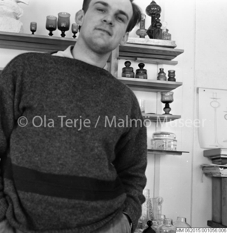 Glaskonstnär Bertil Vallien i ateljén i Åfors 1963.