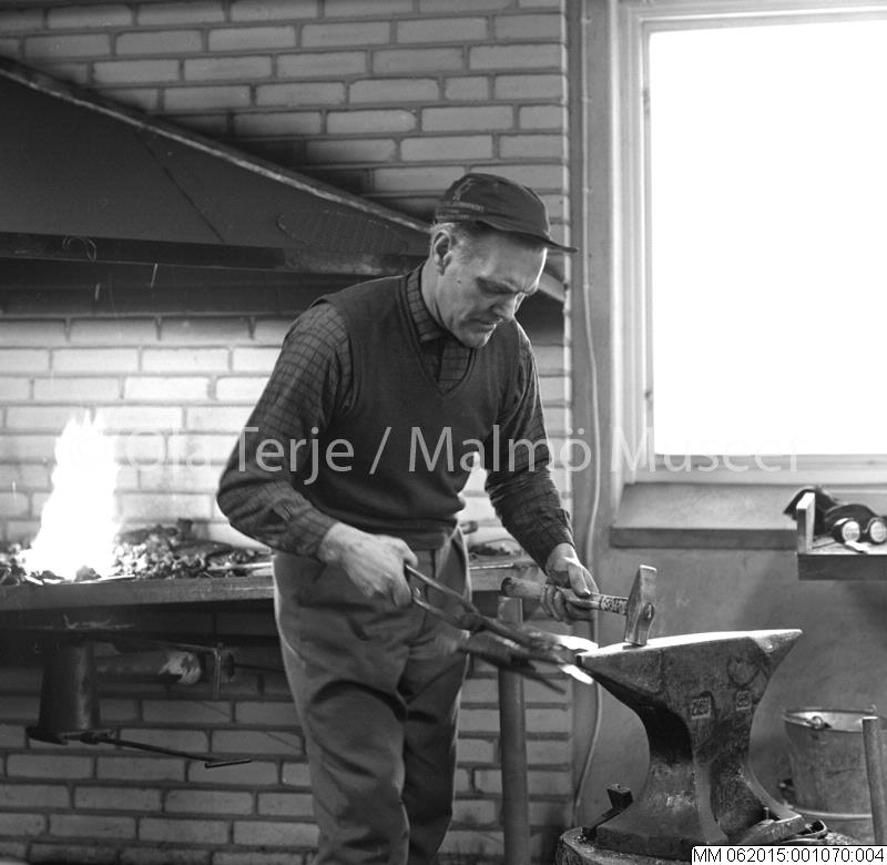 MM 062015:001070:004 :: man, hammare, smide, smidesarbete, städ, verkstad, ässja